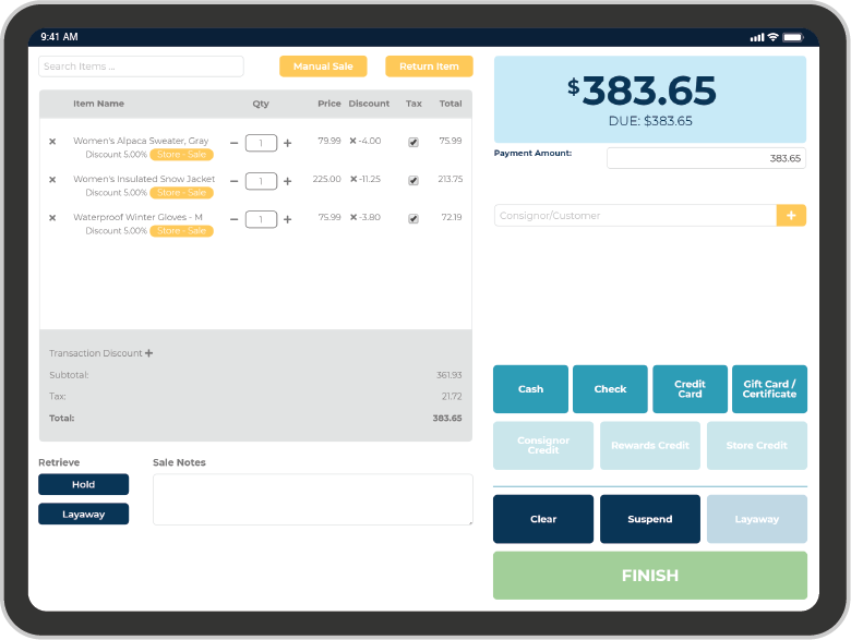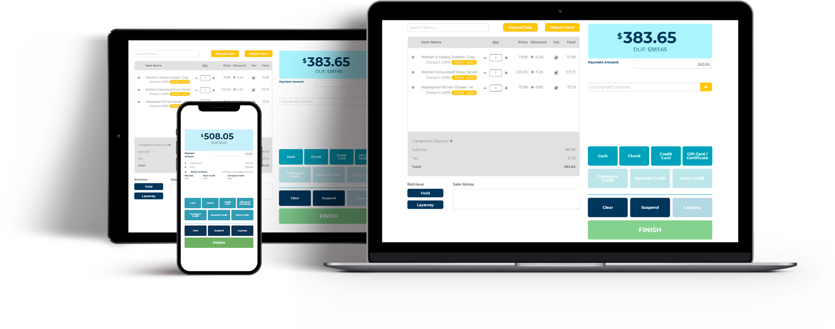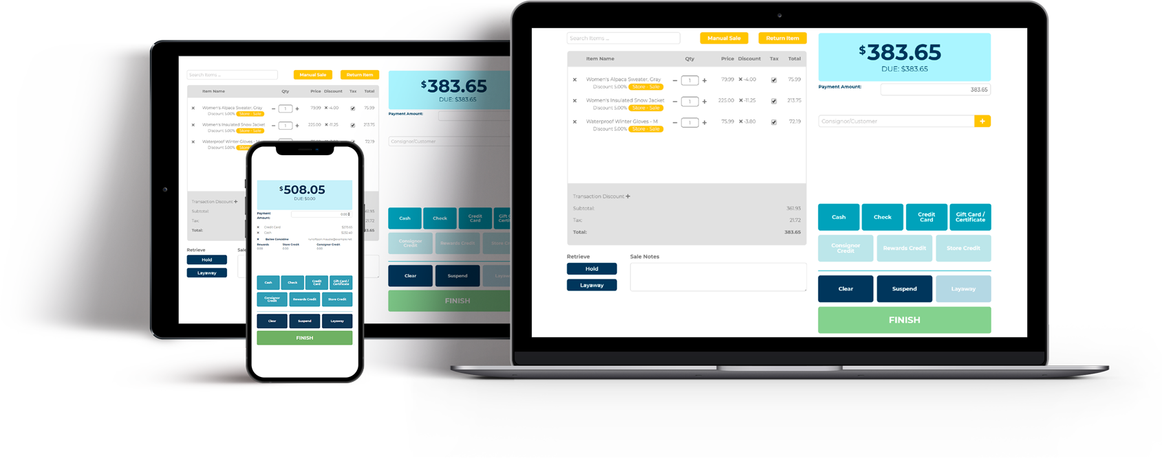 Run sales from PC, MAC, and iPad. Discount items, utilize our rewards program, and offer to print, email, or text receipts.